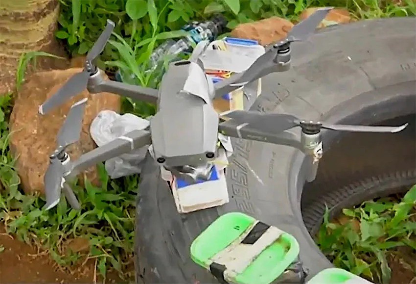One of the armed drones that was reportedly recovered in Tepalcatepec. (Mexico News Daily screencap)